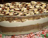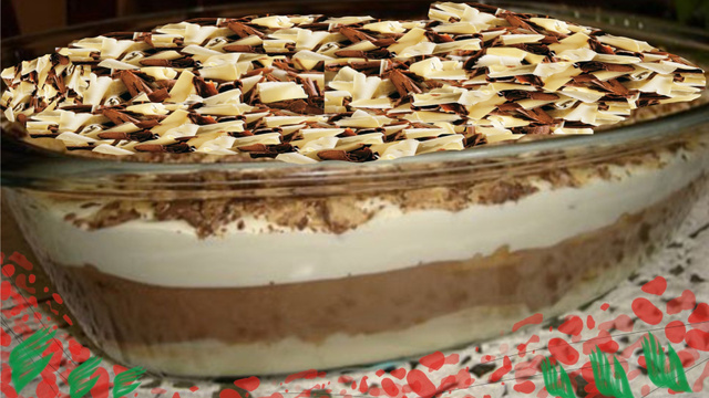 Em uma travessa coloque o 1° creme depois molhe a bolacha de maisena no leite e cobra o creme com a bolacha, depois coloque o 2°creme e molhe a bolacha novamente e cubra o creme com a bolacha molhada no leite por ultimo adicione o 3°creme e decore com raspas de chocolate.