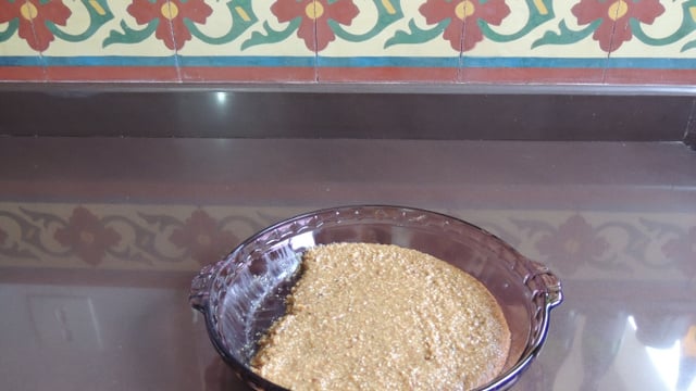 Despeje sobre uma superfície limpa (pedra ou assadeira), acerte bem com uma espátula.