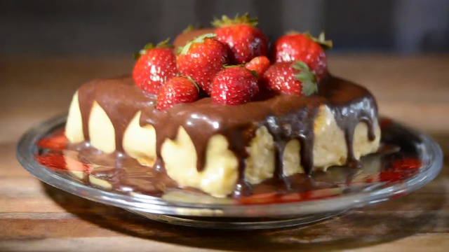 Deixe esfriar e coloque os morangos por cima.