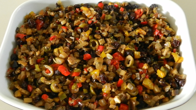 Misture todos os ingredientes e coloque numa assadeira de alumínio em forno alto, preaquecido, por aproximadamente 1 hora e 30 minutos, ou até que as berinjelas estejam escuras e murchas.