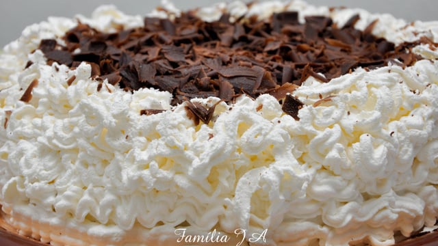 cubra com o recheio, ponha a última camada, molhe com o refrigerante. Cubra todo o bolo com o chantilly e decore com o coco e as raspas de chocolate.