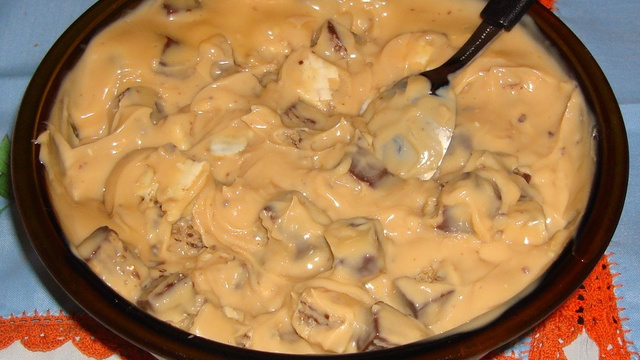 Depois jogue o bis picado (um bis pode ser cortado em 4 cubinhos).