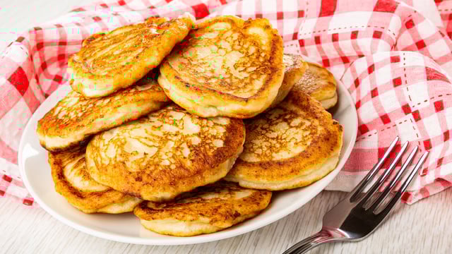 Aqueça e unte a frigideira com a manteiga e coloque a massa no centro.