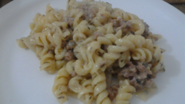 em uma panela maior coloque o macarrão e o molho e misture bem.