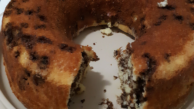 Adicionar o chocolate granulado e misture na massa com uma colher.