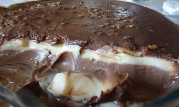 Coloque em um refratário a metade deste creme de chocolate e leve ao congelador por 20 minutos.