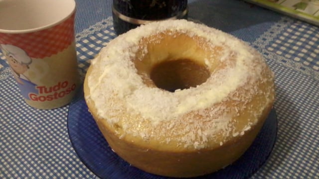 Obs.: A consistência do bolo fica parecida com a de bolinho de chuva, e forma uma casquinha deliciosa. Se quiser maior, basta aumentar proporcionalmente a quantidade de ingredientes.