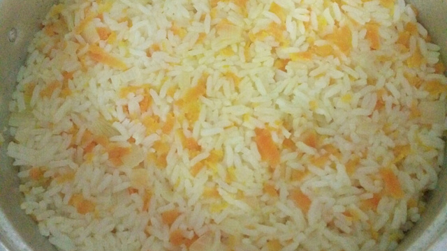 2 copos de 150 ml de arroz parboilizado (cozido e escorido com sal a gosto)