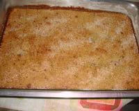 Depois de tudo batido coloque em uma vasilha mexe bem e coloca o fermento e leve para assar por 45 minutos, depois de assado polvilhe um pouco de açúcar por cima e leve ao forno por um minuto e desligue e deixe esfriar normalmente.