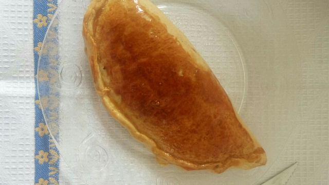 Abra a massa com o rolo sobre uma superfície lisa e corte em círculos com um cortador redondo (10 cm de diâmetro). Coloque uma porção de recheio no centro, dobre a massa e aperte bem as bordas. Coloque na assadeira, pincele com o óleo de milho e leve ao forno por 20 minutos.