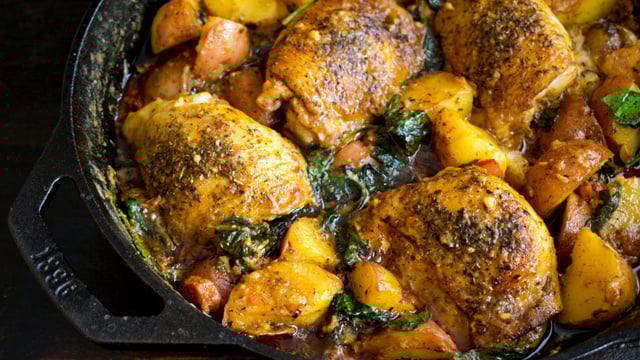 Vire os pedaços de frango para que a pele fique para cima.