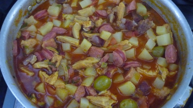 Depois colocar todos os ingredientes cozidos.