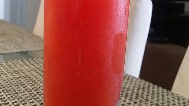 Em um liquidificador, bata os morangos com a água e suco de limão.