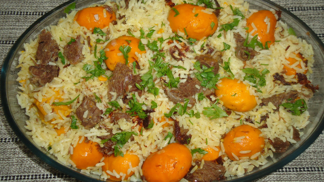 Aqueça o azeite numa panela grande, doure o alho picado e a cebola, junte a carne e o pequi e adicione o sal (a gosto) mexendo por 15 minutos.