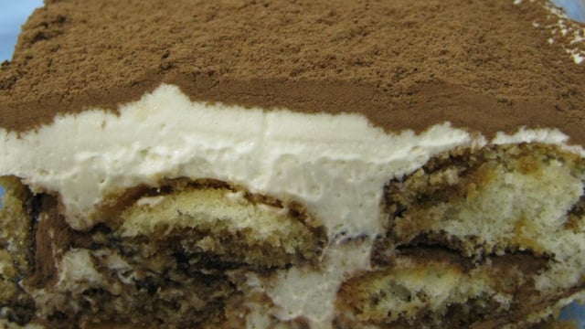 Faça camadas começando com o creme explicado anteriormente, em seguida o biscoito champagne rapidamente mergulhado no café com conhaque, cubra com o creme novamente e polvilhe com o cacau em pó, torne a colocar os biscoitos embebecidos no café, creme e finalize com o cacau em pó.
