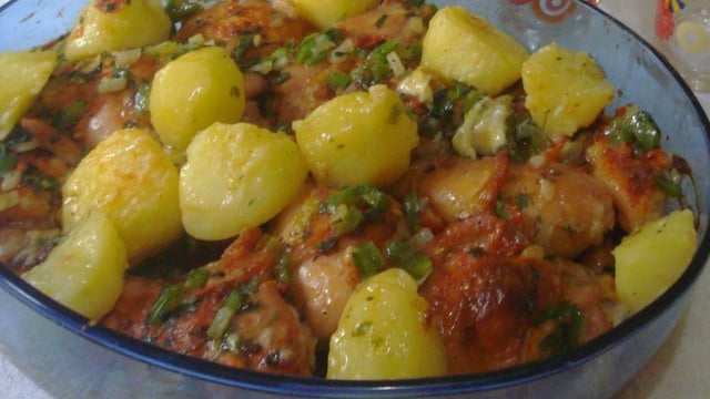 Coloque em uma forma média, jogue a salsinha picada por cima e leve ao forno.
