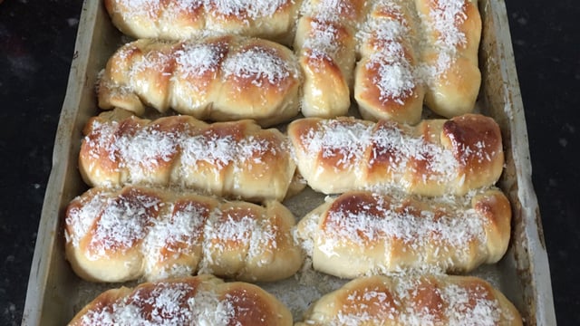 Besuntar com leite condensado e polvilhar com coco ralado.
