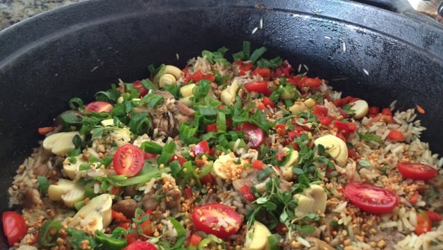 Quando estiver quase pronto adicione a cebolinha picada e pronto.