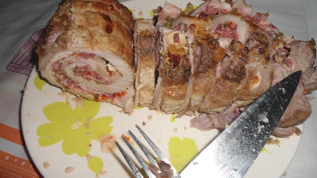 Enrole o lombo de forma que fique parecido com um rocambole.