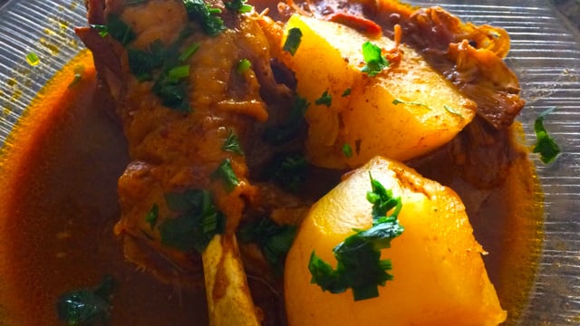 Retire a pressão da panela com a galinha e junte o molho pardo.