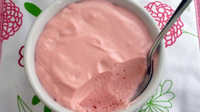 Observação: Na receita da foto, eu usei suco de morango.