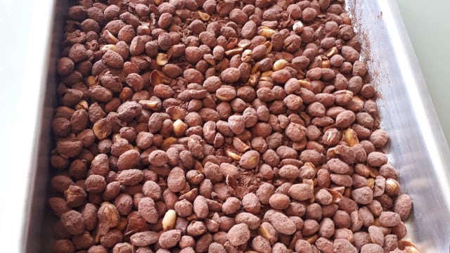 Despeje numa forma e leve ao forno médio pré-aquecido por 10 minutos para o amendoim ficar mais crocante. Não deixe passar de 10 minutos para não torrar ou virar pé de moleque.