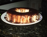 Dissolva o chocolate, com 3 colheres de água, derrame a metade do chocolate na forma, já caramelizada. Coloque o creme e depois coloque o restante do chocolate por cima.