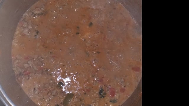 Misture e continue refogando por 5 minutos, coloque dois copos de água para não grudar no fundo da panela e deixe ferver .