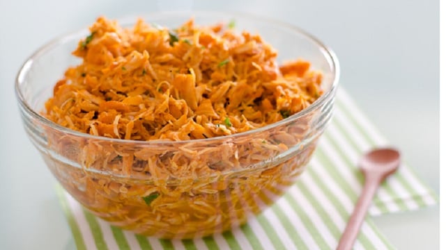 O frango desfiado direto na panela economiza tempo e trabalho manual, serve para receitas como: fricassé, salpicão etc.