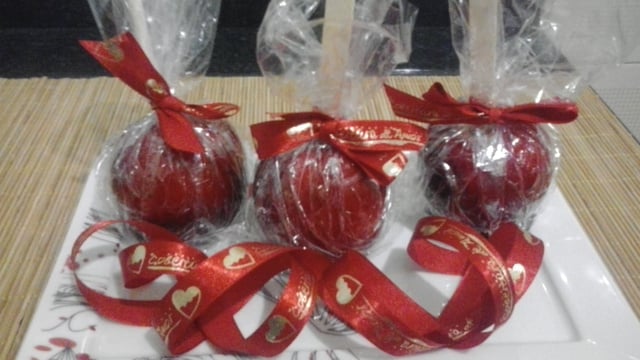 A maçã deverá estar limpa e seca, sem o cabinho, caso ela esteja com alguma umidade a calda não vai grudar;