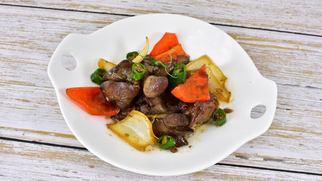 Limpe o excesso de gordura do coração de frango.