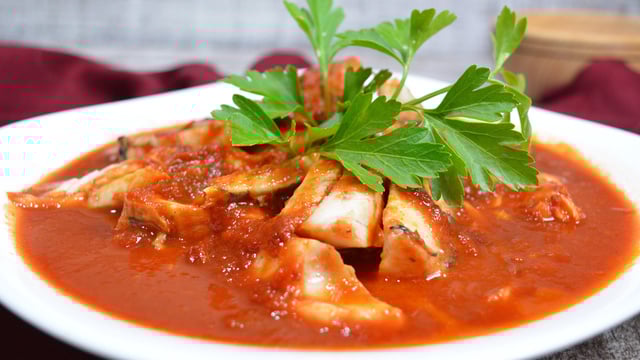 Deixe ferver e apurar um pouco.Enquanto isso frite o peixe e depois coloque as postas no molho e deixe cozinhar.