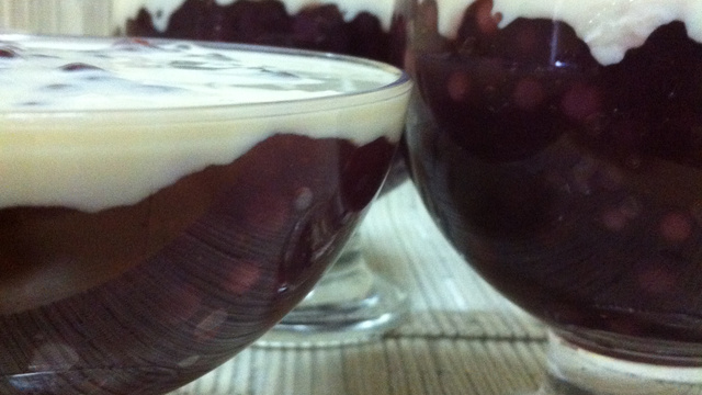 Coloque o sagu em taças individuais ou em pirex, espalhe o creme por cima. Sirva gelado.