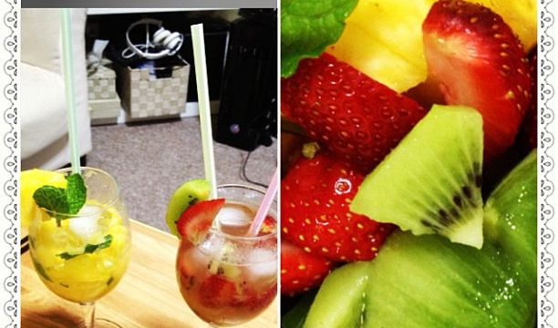 Amasse para sair o gosto das frutas e do hortelã, mas deixe as frutas ainda em pedaços.