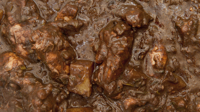 Acrescente água que sobrou dos bifes e o outro caldo de legumes.