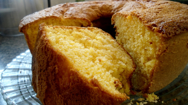 Coloque no liquidificador primeiro os ovos, depois o suco de laranja natural (sem as sementes), o óleo e o açúcar. Depois acrescente o fubá e a farinha, bata no liquidificador até a massa ficar homogênea.