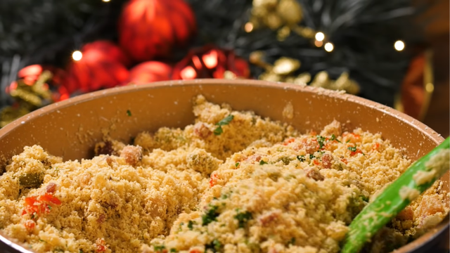 Se você gosta de farofa crocante, torre bem a farinha! O segredo é colocar em uma frigideira em fogo baixo e mexer sempre, sem parar. Sua farofa vai ficar perfeita, pode confiar!