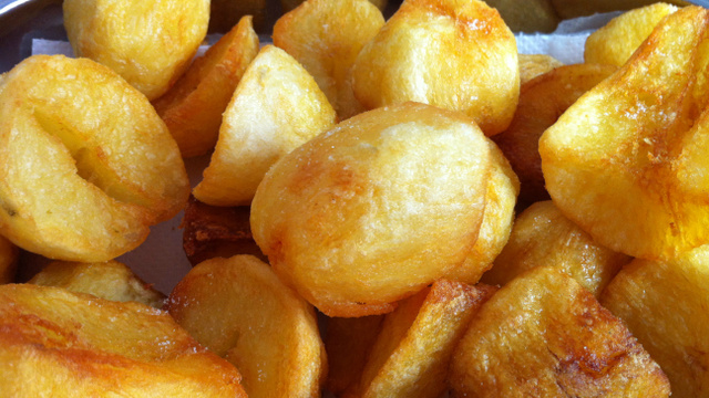Dicas e opções: Salpique alho frito, bacon, queijo ralado ou cebolinha depois de fritar. Sirva com catupiry, requeijão, maionese ou ketchup. A batata corada é bom acompanhamento para carnes e massas, mas também pode ser servida como aperitivo. Se a sua panela é pequena, não frite todas as batatas de uma só vez.
