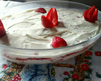 Depois uma camada de moranguinhos molhados no açúcar, e assim por diante.
