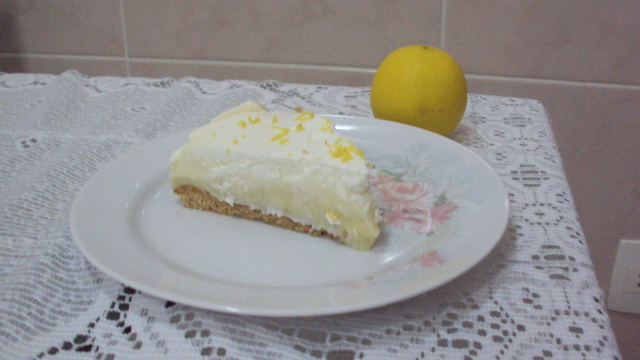 Se quiser coloque raspinhas de casca do limão siciliano para decorar a torta.