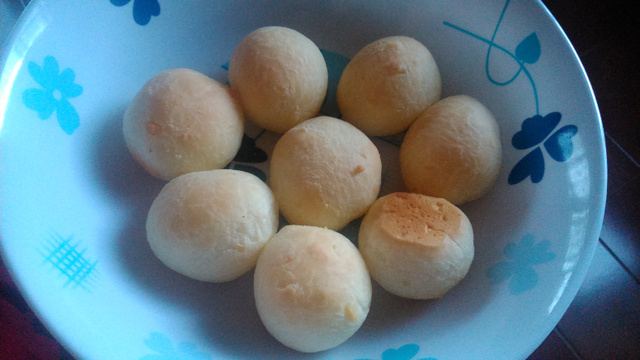 Coloque o polvilho em uma tigela grande e reserve. Coloque numa panela o leite, a água, o óleo e o sal e levar ao fogo (não tampar). Quando começar a ferver, desligue o fogo e coloque em cima do polvilho reservado. Coloque aos poucos, porque talvez não precise colocar tudo. Mexa primeiramente com uma colher grande até escaldar todo o polvilho (fica igual a uma goma). Deixe esfriar um pouco. Junte os ovos, um a um, mexendo sempre com as mãos, por último acrescente o queijo ralado. Sove até desgrudar das mãos. Faça bolinhas e coloque na assadeira. Essa bolinha não vai crescer quase nada, então pode colocar uma aproximada da outra. Assar por mais ou menos 25 minutos.