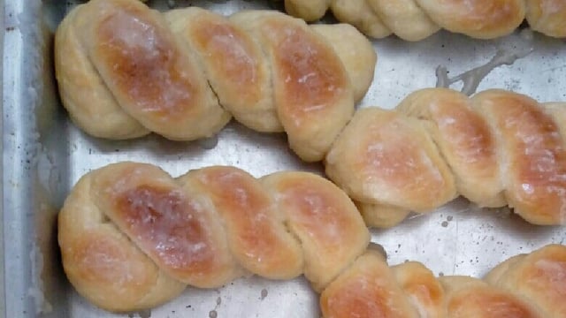 Coloque todos os ingredientes em uma tigela e mexa bem.Vá acrescentando o trigo aos poucos até a massa ficar firme e lisa.