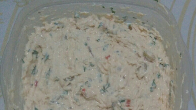 Coloque a maionese e mexa até formar uma mistura homogênea. Prove e se precisar coloque o outro envelope de sazón.