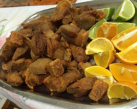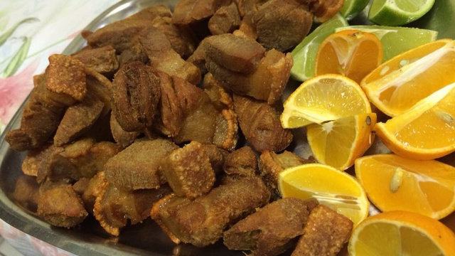 Em outra panela, ferva o óleo e depois que o torresmo estiver frio, frite-os normalmente.