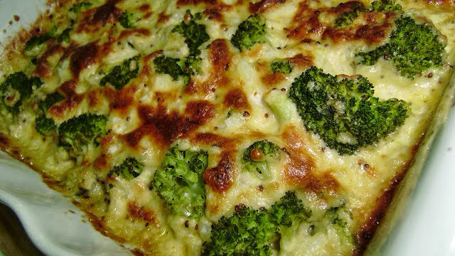Na mesma frigideira refogue o brócolis cozido e adicione o creme de leite.