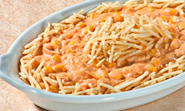 Transfira para uma travessa, cubra com a batata-palha e sirva logo em seguida.