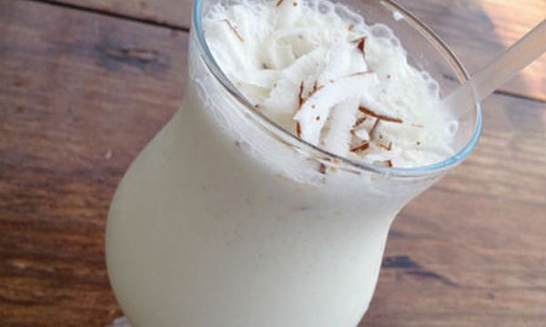 Decore o copo jogando raspas de coco por cima e bom apetite.
