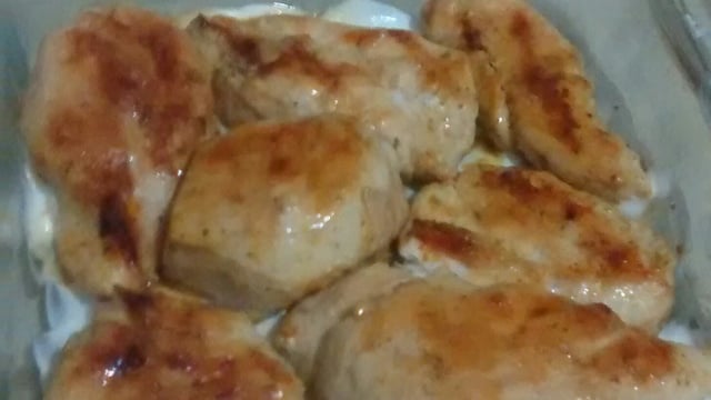 Coloque para fritar os filés de frango em fogo baixo.