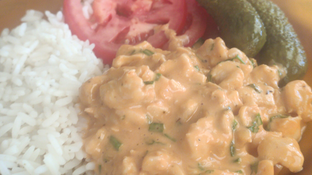Cozinhando, apague o fogo e acrescente o requeijão misturando bem.