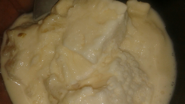 Mexer com fuê (batedor manual) ou garfo de 30 em 30 minutos por 3 vezes (fica mais cremoso).